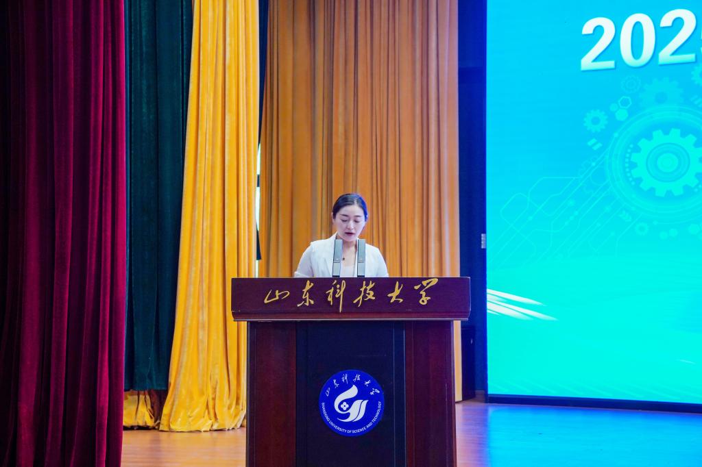 军训动员大会上,刘梅月从军训的意义、纪律的要求、内务的标准三个方面向全体本科生新生提出希望和要求。她勉励新生以汗水铸就坚韧,在迷彩方阵中淬炼机电人的责任担当,用军训成果滋养科技报国之志。