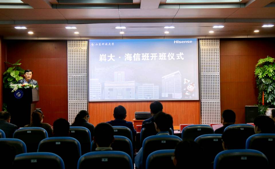 李炜介绍了青岛海信集团有限公司的发展情况,他表示,海信集团把人才战略作为企业的第一战略,将为“海信班”的同学提供专业化指导。他希望同学们珍惜这次机会,认真学习理论知识,扎实投入实习实践,提高锻炼动手能力,为将来的就业工作或深造学习打下坚实的基础。