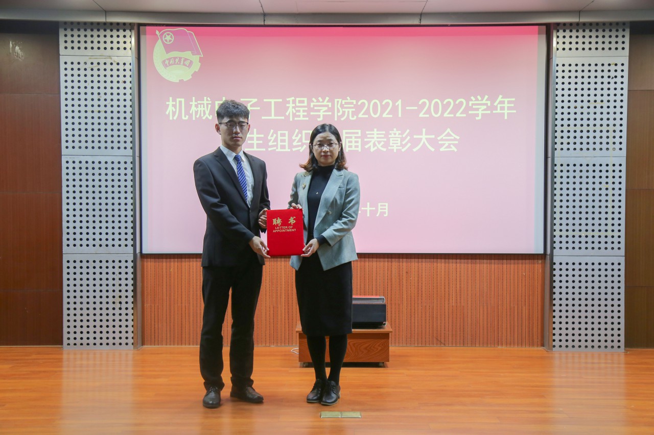 点击:为进一步提高学生组织的自我服务意识,保障学生工作的连续性,10月29日下午,BBIN波音平台百家乐在学院报告厅召开2021-2022学年机电学院学生组织换届表彰大会,BBIN波音平台百家乐党委副书记、副院长陈猛,团委书记樊玉华,学院全体辅导员及部分校、院学生会主席出席会议,团委老师宋阔主持会议。