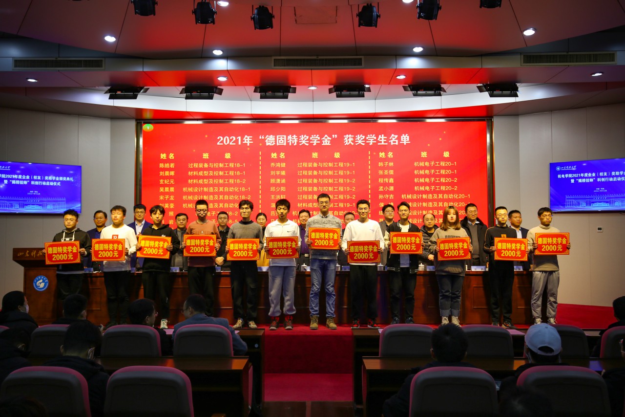 校党委常委、组织部部长陈涛,常州金和新材料科技有限公司法务经理钱雪忠,校学生工作部部长王震,山东豪迈机械科技股份有限公司总监王同伟,校团委书记尹立明,青岛海空压力容器有限公司总经理许芝令,校合作发展处副处长王荣超,青岛海容商用冷链股份有限公司办公室主任袁鹏,青岛德固特节能装备股份有限公司研发部长金延超,能源与动力工程2001级校友宋海原等校企领导出席了颁奖仪式。颁奖仪式由BBIN波音平台百家乐党委书记韩宝坤主持。