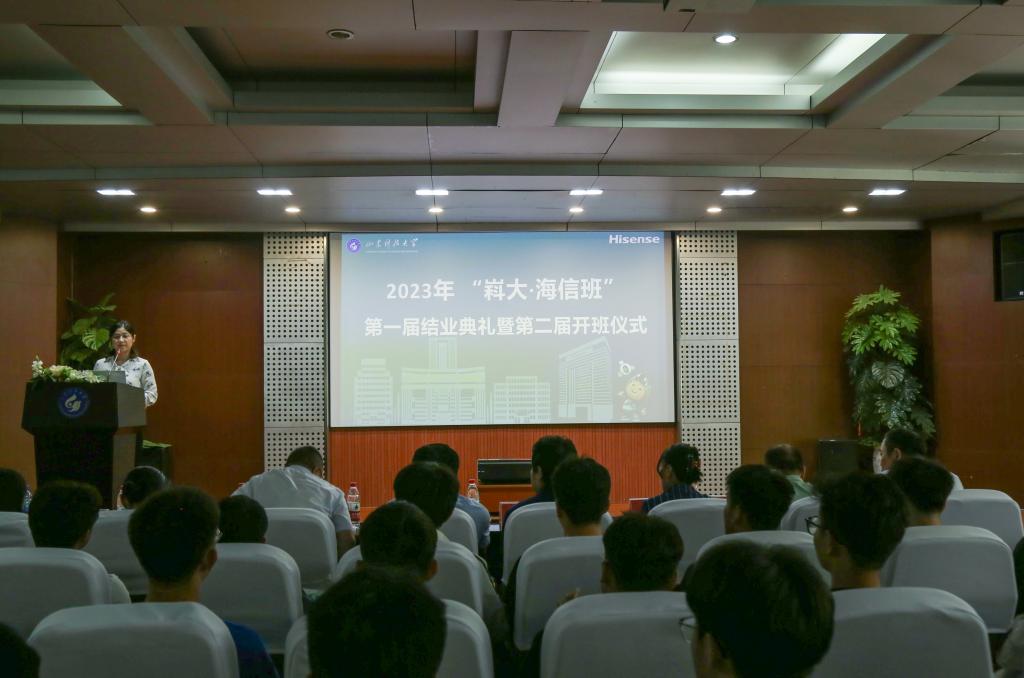 点击:为加强校企合作,深化产教结合,5月19日下午,BBIN波音平台百家乐与海信视像科技有限公司校企共建“嵙大·海信班”第一届结业典礼暨第二届开班仪式在BBIN波音平台百家乐报告厅举行。海信视像科技制造中心总经理刘广劼、海信视像科技团委书记、人力资源部副总经理梁艳华、BBIN波音平台百家乐合作发展处副处长王荣超、相关学院学生工作负责人以及部分校企海信班工作人员出席本次活动,BBIN波音平台百家乐团委书记樊玉华主持本次活动。