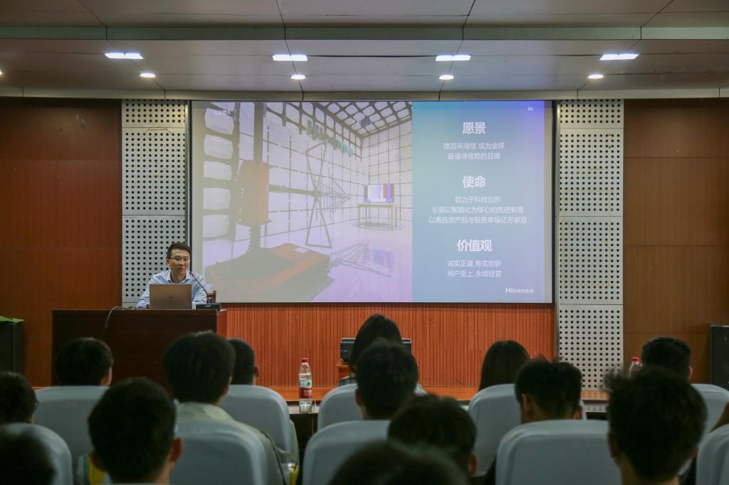 会议伊始,刘广劼致辞表示,海信重视青年的力量,重视同校方的合作关系,将“人才发展战略”作为企业的第一战略,将“敬人”作为公司的核心文化之一,从校企互访、技术交流、产教融合、就业实习等多方面与高校建立了全方位、多层面的合作关系。他指出,海信与山科有很多不谋而合的气质和精神内核,这也让大家看到一致的着力点,并勉励“嵙大·海信班”优秀学子在未来的发展规划中,坚持对技术的追求和探索,坚守不断探索敢于试错的初心,坚定创新与奋进的信念,在与海信碰撞中,迸发出绚烂的火花。