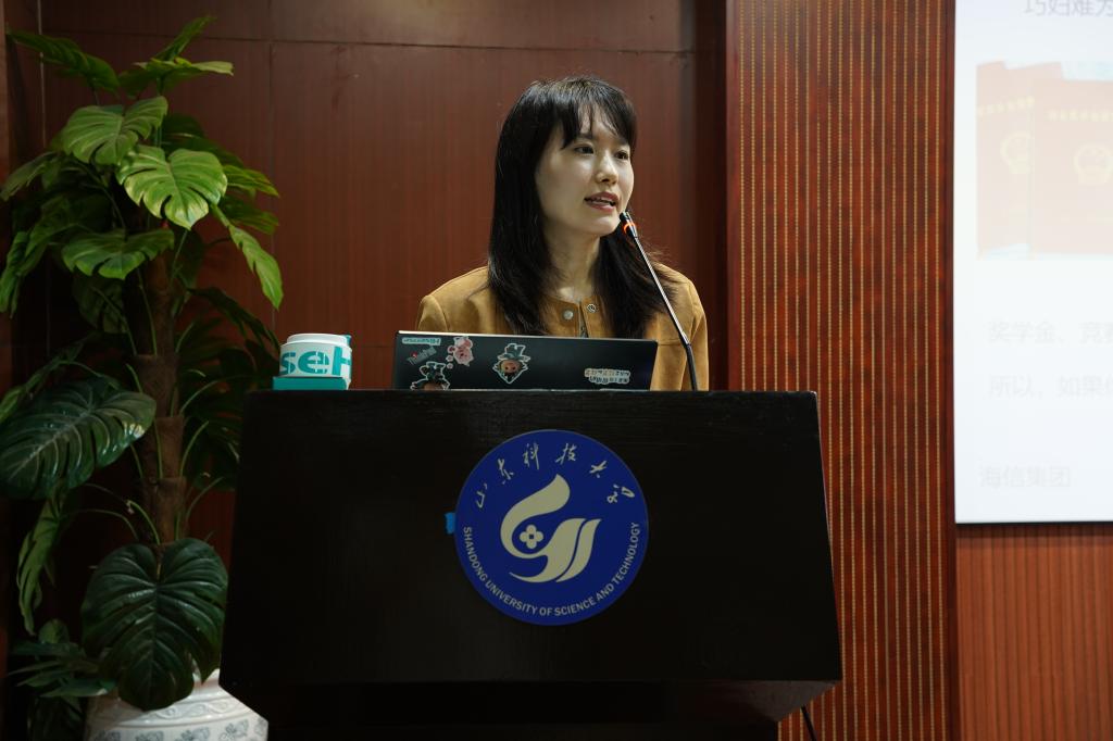 活动伊始,董妍君老师以“HR 眼中的好简历”为切入点,聚焦优秀简历制作展开讲解。她首先解析“个人信息-教育背景-实践经历-技能证书”的黄金排版逻辑,指导学生通过调整模块优先级来突出自身优势;随后结合海信校园招聘的真实简历案例,直观对比“量化实践成果、匹配岗位技能认证”等加分项,以及“内容冗长、经历描述泛泛”等雷区,帮助学生快速掌握简历优化方法。