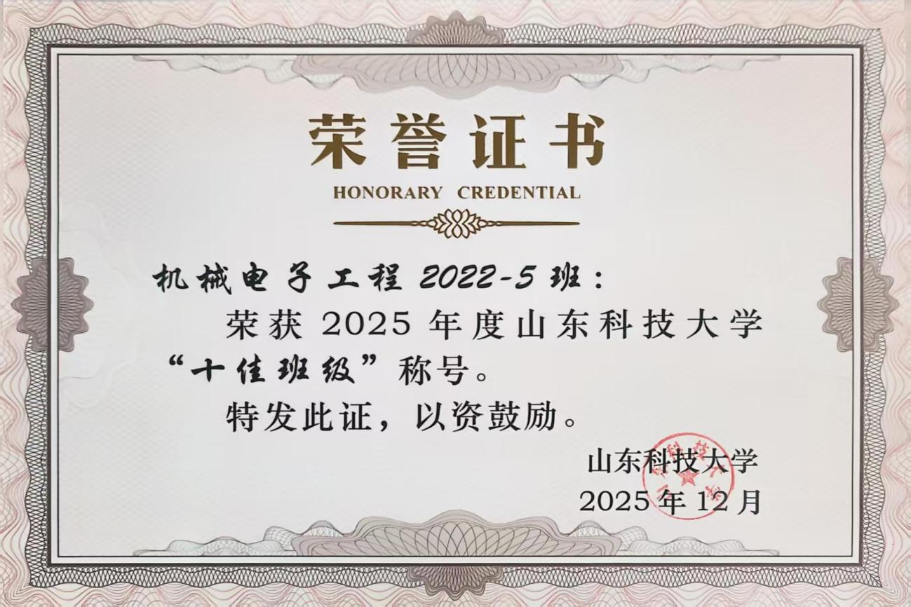 机械电子工程2022-5班获评BBIN波音平台百家乐“十佳班级”