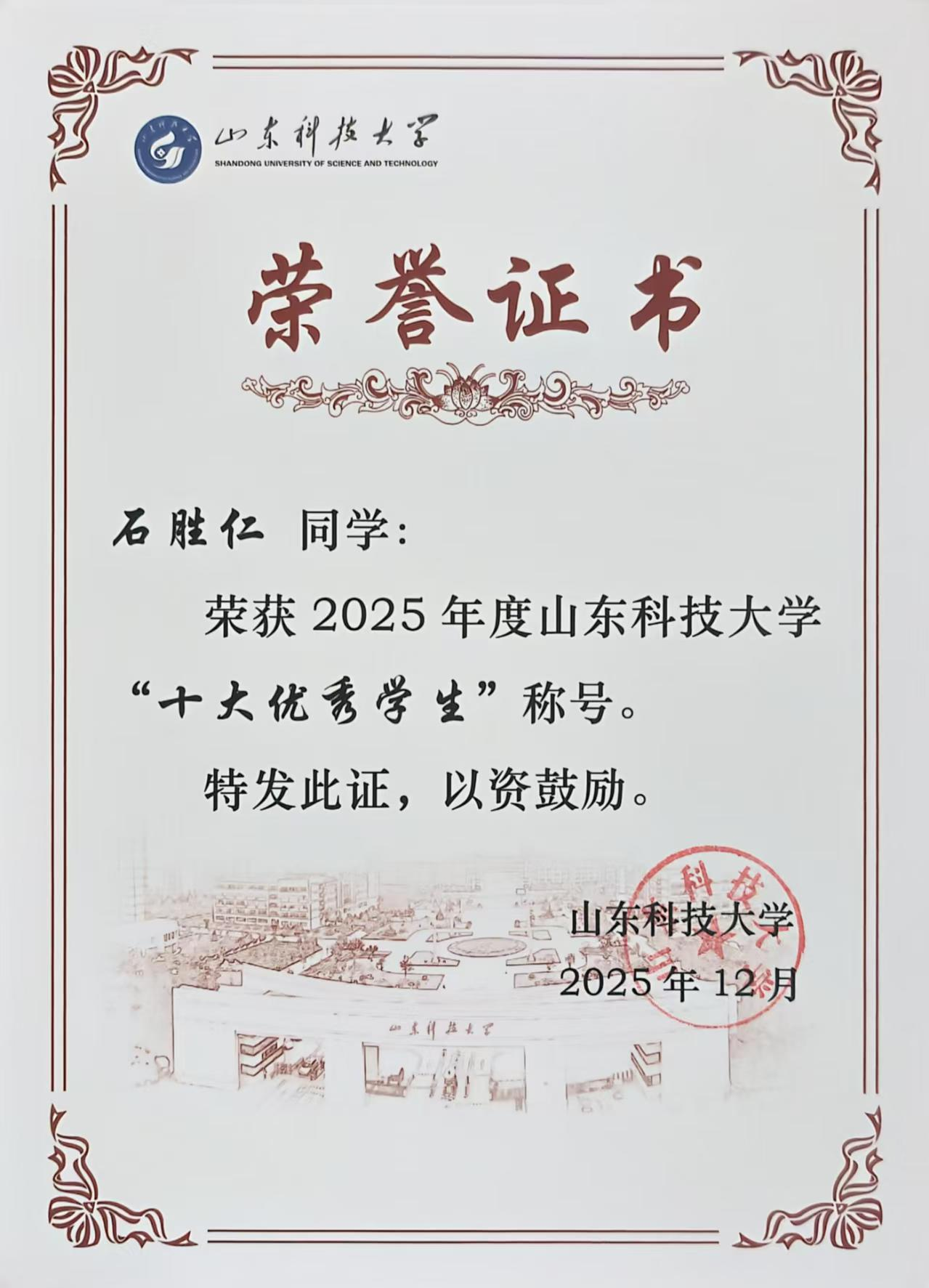石胜仁同学获评BBIN波音平台百家乐“十大优秀学生”荣誉称号