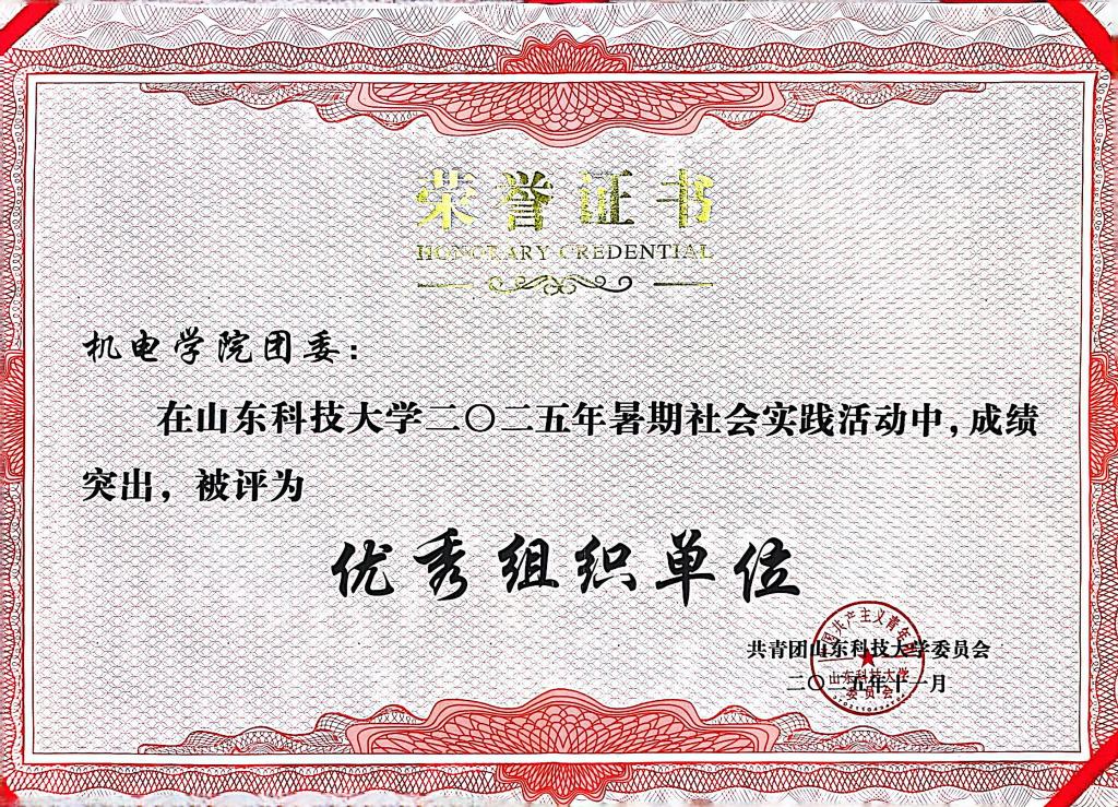 立足机电专业“重实操、强应用”特点,学院构建“制度引领+标杆示范+文化浸润”三维学风建设体系,实施12项学风提升工程,营造“比学赶超”的良好生态。开展书香机电暨学风建设主题教育等活动,以榜样力量传承勤学笃行的科大学风。2025年,学院学子斩获国家奖学金、省政府奖学金等多项荣誉,5名同学获“青岛市千名优秀大学生”,石胜仁同学获评校“十大优秀学生”,机械电子工程2022-5班获校“十佳班级”;机械设计制造及自动化2021-1班团支部获推“全国煤炭行业五四红旗团支部”。校友赵瑞华获教育部“全国高校毕业生基层就业卓越奖学金”,成为我校第二位获此国家级荣誉的校友。新生军训工作斩获“优秀军训单位”,4个班级、21名同学分别获军训相关表彰。