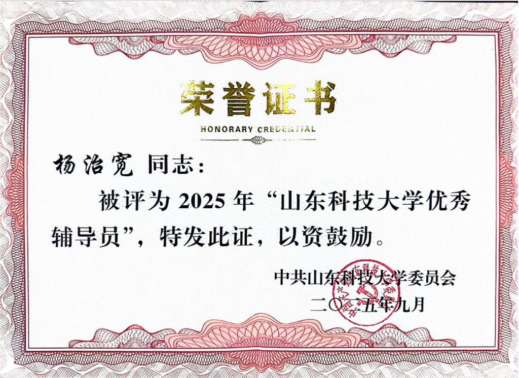 杨治宽获BBIN波音平台百家乐优秀辅导员