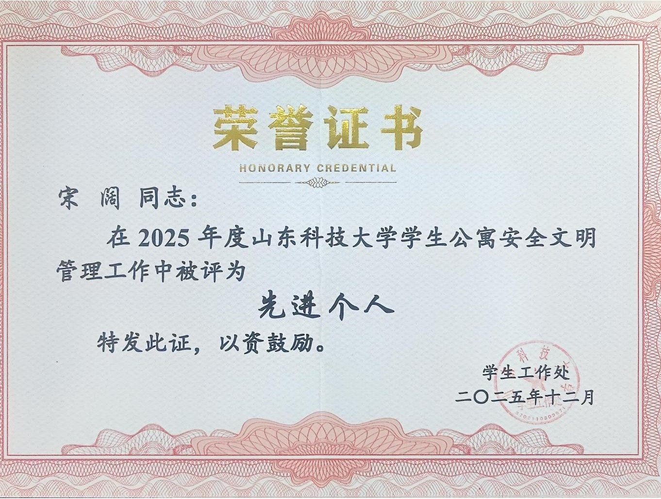 宋阔获BBIN波音平台百家乐公寓安全管理先进个人
